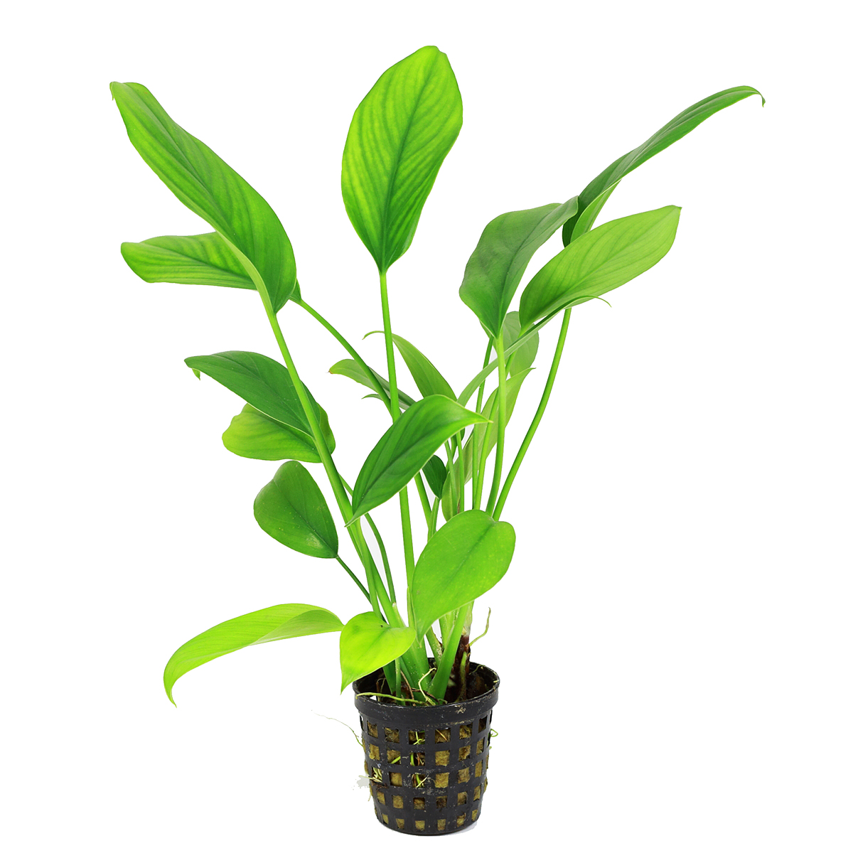 Aglaonema simplex - Ciemnozielone grube liście sprawiają iż można ja pomylić z popularnym wśród akwarystów anubiasem, dzięki temu staje się alternatywą dla tej dość drogiej rośliny. Nie jest trudna w uprawie i nie wymaga mocnego oświetlenia. W zakresie pielęgnacji, tak samo jak w przypadku innych roślin, zalecane jest okresowe podcinanie i oczyszczanie liści. Można posadzić ją na korzeniu jednak zalecane jest aby częściowo znajdowała się w podłożu.
