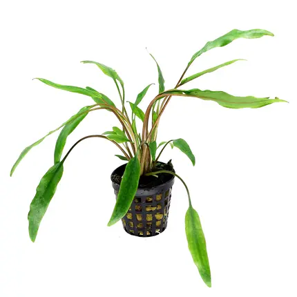 Cryptocoryna lutea - Jej podłużne zielone liście przy dobrym oświetleniu uzyskują piękną jasnozieloną barwę. Roślina jest wytrzymała i dobrze nadaje się do sadzenia na pierwszym planie. Można ją sadzić w zagłębieniach i w towarzystwie wyższych roślin. Nadaje się do akwarium, w którym ryby lubią podgryzać liście. Nasze sadzonki mają silnie rozwinięty układ korzeniowy.