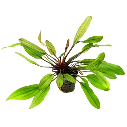 Echinodorus Jani -  Duże, podłużne i gęsto rosnące liście tej rośliny osadzone na stosunkowo krótkiej łodydze sprawiają, że stanowi ona bardzo dobre uzupełnienie środkowego planu akwarium. Młode liście mają intensywnie bordowy kolor, dzięki czemu mogą tworzyć bardzo ładny kontrast w resztą roślin.