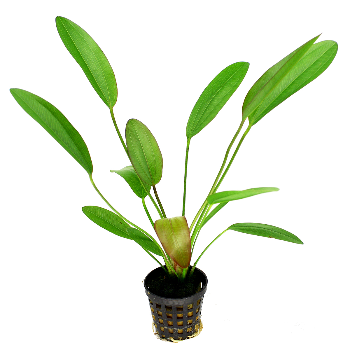 Echinodorus Kaliebe -   Blaszki liściowe tej odmiany mają ciemnozielony kolory i osadzone są na dość długich ogonkach. Młode liście są czerwonawe i z czasem dopiero zaczynają zielenieć. Podobnie jak inne żabienice, ta również jest prosta w uprawie dzięki swej dużej wytrzymałości. Doskonale nadaje się na tylny bądź środkowy plan akwarium.