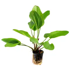 Echinodorus Kaliebe -   Blaszki liściowe tej odmiany mają ciemnozielony kolory i osadzone są na dość długich ogonkach. Młode liście są czerwonawe i z czasem dopiero zaczynają zielenieć. Podobnie jak inne żabienice, ta również jest prosta w uprawie dzięki swej dużej wytrzymałości. Doskonale nadaje się na tylny bądź środkowy plan akwarium.