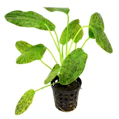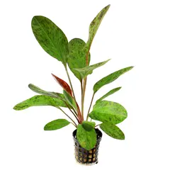 Echinodorus Green Ocelot - Jest to jeden z bardziej efektownych gatunków żabienicy, a jednocześnie łatwy w uprawie. Jasnozielone liście w ciemnoczerwone lub brązowe plamy tworzą imponujący efekt w akwarium.