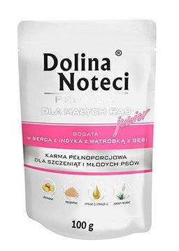 DOLINA NOTECI PREMIUM mokra karma dla małych ras Junior bogata w serca z indyka 100g