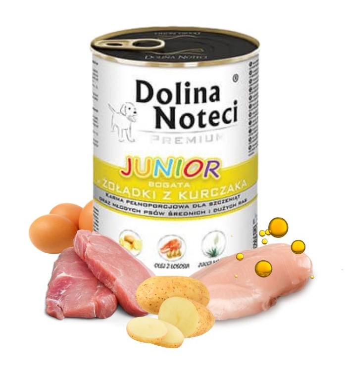 Karma mokra Dolina Noteci JUNIOR bogata w żołądki z kurczaka:
