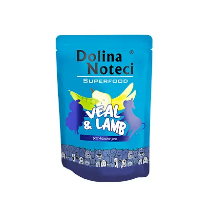 DOLINA NOTECI Superfood Mokra karma dla psa cielęcina i jagnięcina saszetka 300g