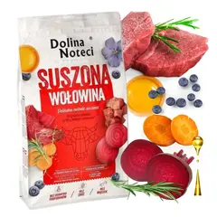 Dolina Noteci Premium karma suszona dla psa - wołowina: ✅ karma pełnoporcjowa suszona dla dorosłych psów wszystkich ras, ✅ podstawą składu karmy suszonej są mięso i podroby (80% łącznej ilości surowców), z dużym - 40% udziałem tkanki mięśniowej...