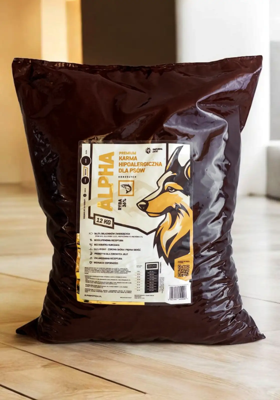 Skład: Suszone ryby 36% (łosoś 20%, sardynka 10%, śledź 3%, szprotka 3%)