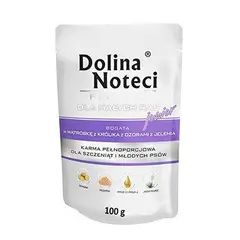 Dolina Noteci Premium bogata w wątróbkę z królika z ozorami z jelenia - saszetka 100g ✅ to karma pełnoporcjowa dla szczeniąt i młodych psów, bezzbożowa ✅ bogata w witaminy, które wspomagają układ odpornościowy, ponieważ zawierają żelazo, selen, miedź i...