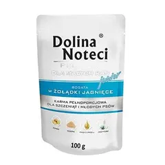 Dolina Noteci Premium bogata w żołądki jagnięce - saszetka 100g ✅ to karma pełnoporcjowa dla szczeniąt i młodych psów, bezzbożowa ✅ jest źródłem wysokiej jakości białka bogatego w aminokwasy takie jak lizyna i leucyna, ✅ jagnięcina stanowi cenne źródło...